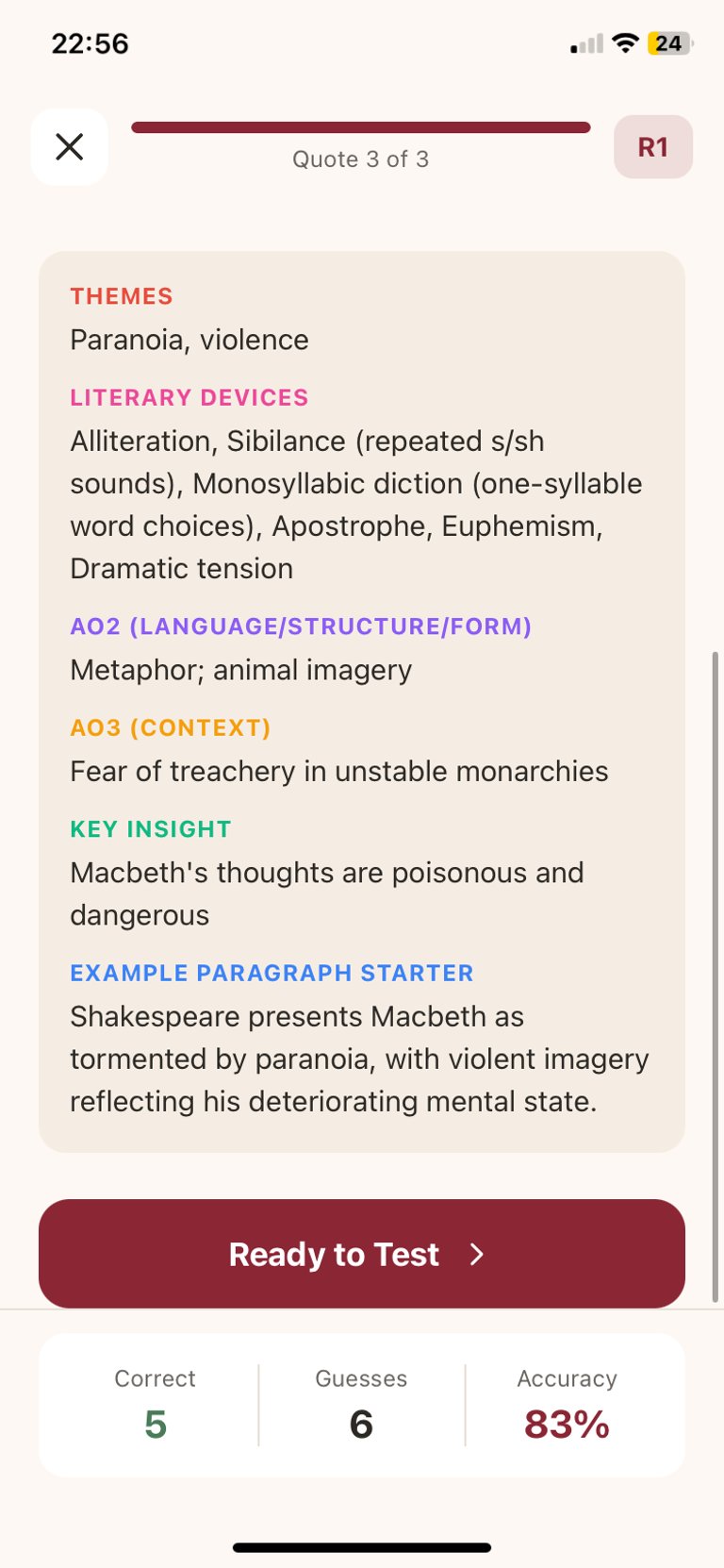 Helping Year 10 and 11 students master key quotes efficiently.