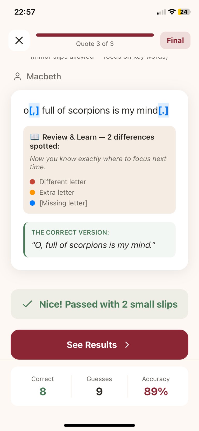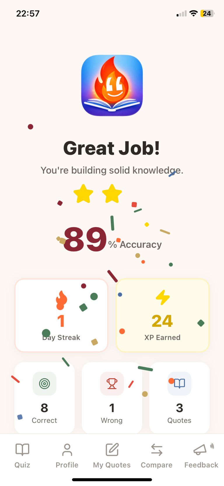 Complete quick, focused quote quizzes each day to build lasting recall and confidence.