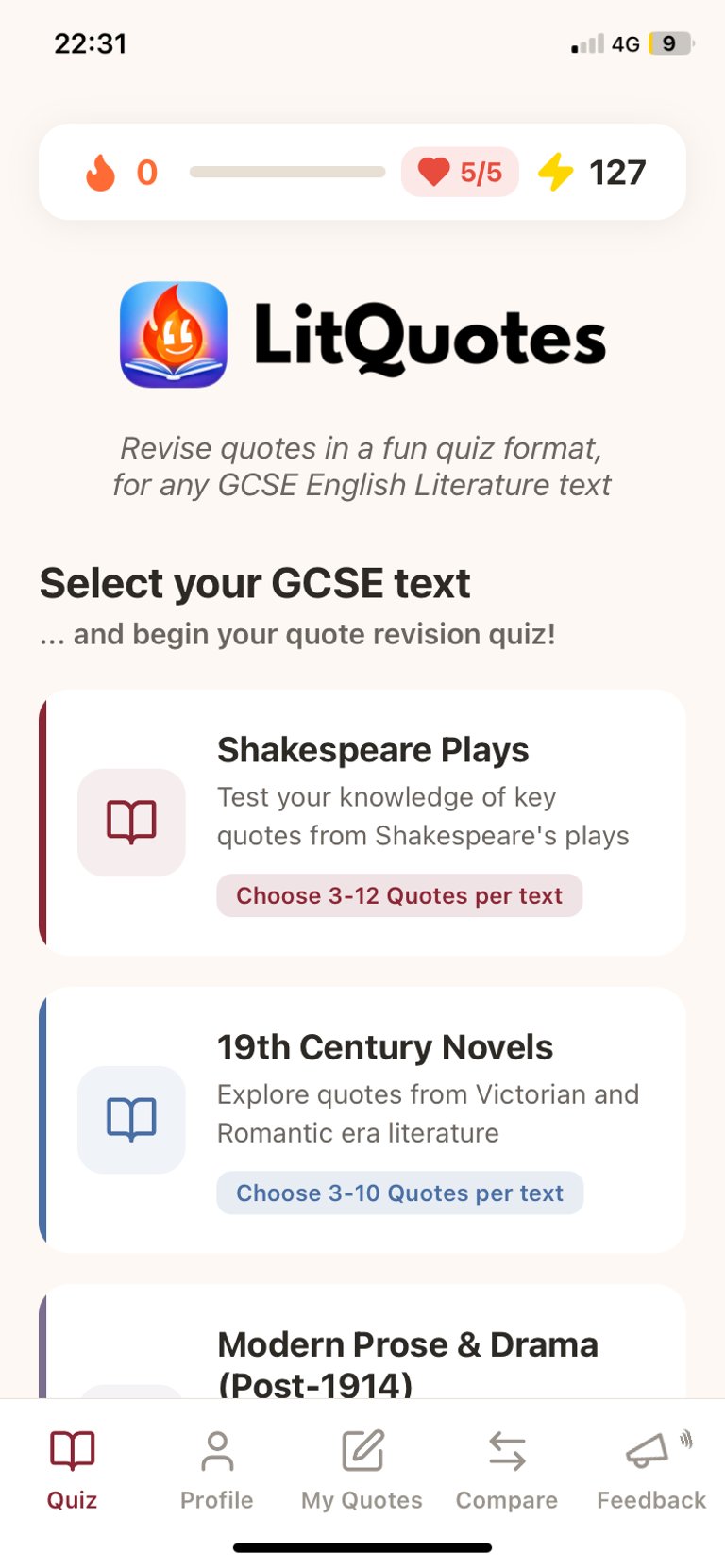 Every GCSE Eng Lit text from every major exam board in the UK is included in LitQuotes. This means all AQA, Edexcel, and OCR (and others) are in there.